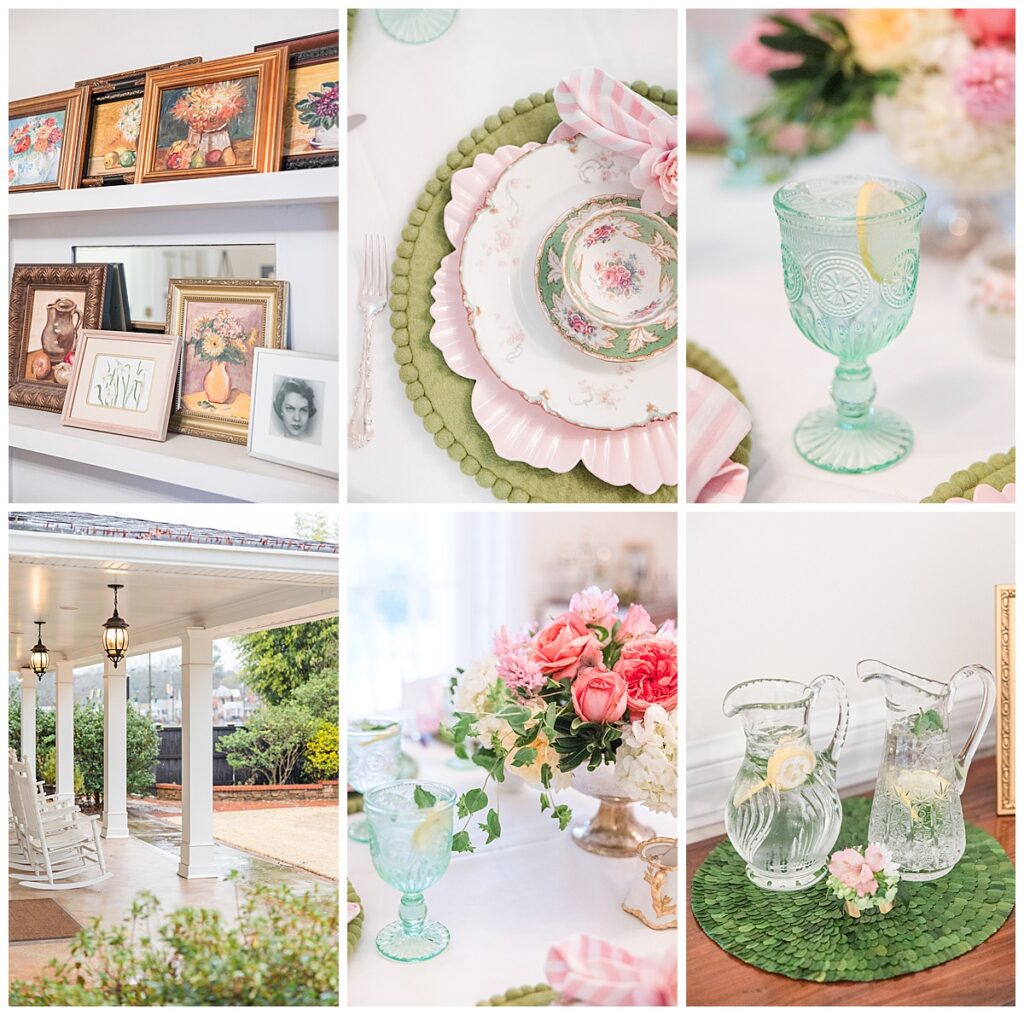 We absolutely LOVED our first event as new venue owners at The Garden, formerly known as Thompson House and Gardens near Athens, GA. This sweet tea 90th birthday tea party was the perfect kick off to the season! We discovered the birthday girl actually knew Miss Thompson, the original house owner, and holds memories of sitting with her in the original parts of the venue. Her daughters put together this incredibly beautiful tea party for her and even surprised her by showcasing all of her art in one space!